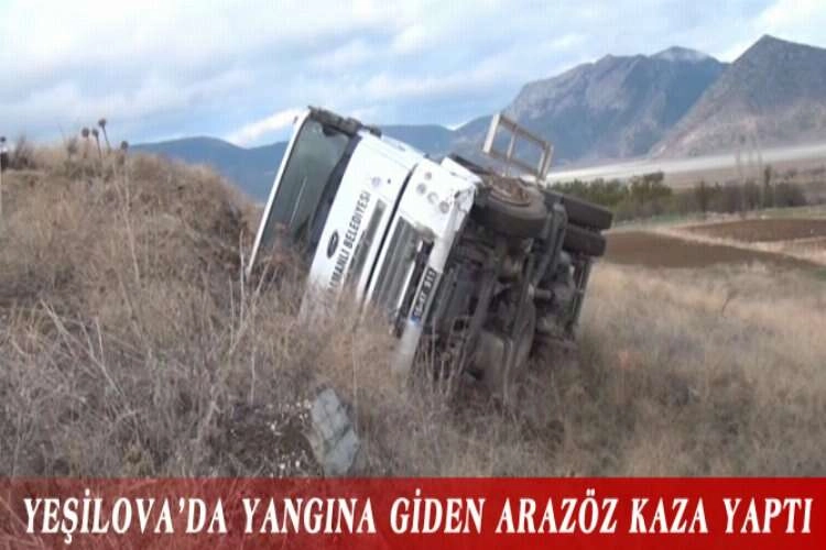 Edinilen bilgilere göre, dün sabaha karşı 05.30 sularında Yeşilova ilçesine bağlı Dereköy köyünde ev yangını çıkması üzerine Karamanlı Belediyesine ait 15 KF 911 plakalı arazöz, yangına müdahale etmek için yola çıktı. Süleyman Hacıbeyoğlu idaresindeki arazöz, Dereköy köyü yakınlarında sürücüsünün yağış sebebiyle direksiyon hakimiyetini kaybetmesi sonucu devrildi.