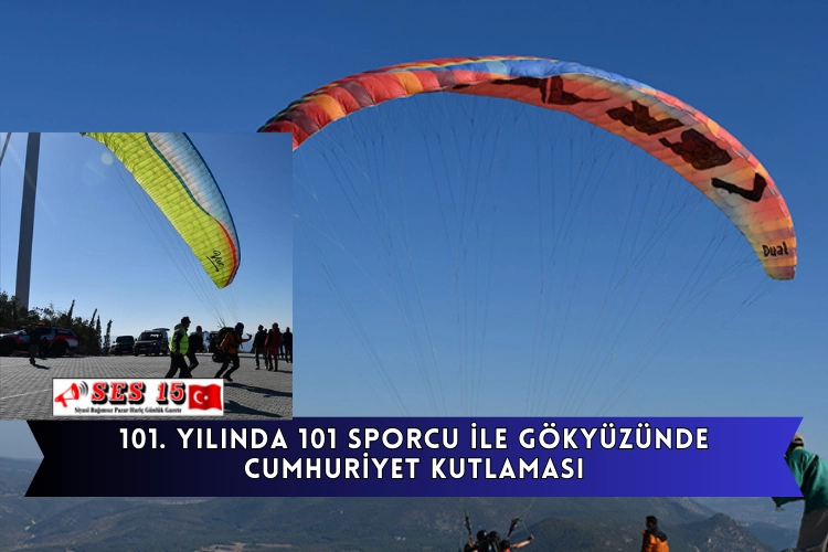 Valilik ve Türk Hava Kurumu Bilecik Şubesi işbirliğiyle, Meryem Dağı Yamaç Paraşütü Alanı'nda düzenlenen organizasyonda Bilecik, Eskişehir, Kırklareli, Ankara, İstanbul, Yalova, Bursa ve Kocaeli'nden gelen 101 sporcu, Cumhuriyet'in 101'inci yıl dönümü nedeniyle paraşütleriyle uçarak Türk bayrağı açtı.