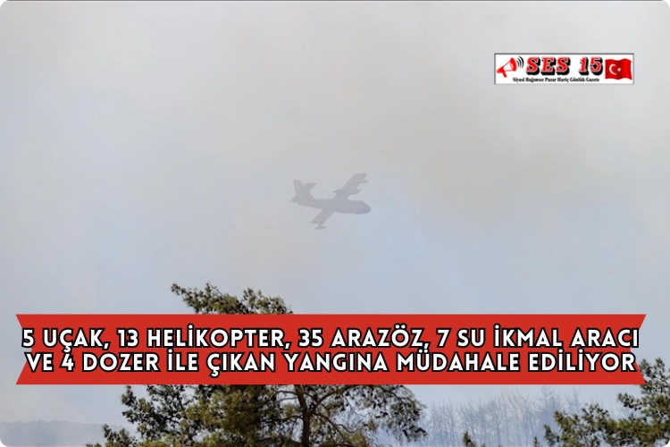 İhbar üzerine bölgeye İzmir Orman Bölge Müdürlüğüne bağlı 5 uçak, 13 helikopter, 35 arazöz, 7 su ikmal aracı ve 4 dozer sevk edildi.