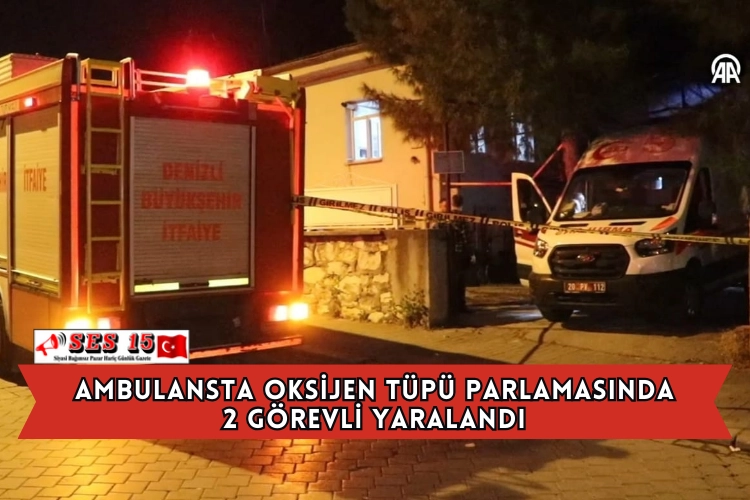 Denizli'nin Merkezefendi ilçesinde ambulansta oksijen tüpünün parlaması sonucu 2 görevli yaralandı