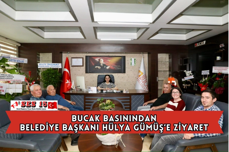 Kanal 15 Genel Müdürü Hüseyin Dilek, Akça Gazete Sahibi Halim Akça ve Hedef Matbaası Sahibi Gazeteci Mustafa Tutum 31 Mart Mahalli İdareler Genel Seçimlerinde Bucak Belediye Başkanı seçilen Hülya Gümüş’e hayırlı olsun ziyaretinde bulundu. Ziyarette Kanal 15 mikrofonuna konuşan Belediye Başkanı Hülya Gümüş, ziyaretlerinden dolayı Hüseyin Dilek, Halim Akça ve Mustafa Tutum’a ayrı ayrı teşekkür etti. Başkan Hülya Gümüş gündeminin su sorunu olduğunu söyledi. Bucak Belediyesi’nin borçlarının yazılı olduğu borç pankartıyla alakalı da açıklama yapan Başkan Gümüş, şeffaf belediyecilik anlayışla 5 yıl sonra yeniden Bucak Belediyesi’nin borçlarını kamuoyuyla paylaşacağının da sözünü verdi, ayrıca güzel bir belediye bıraktıkları için geçmiş dönem Belediye Başkanına teşekkür etti.