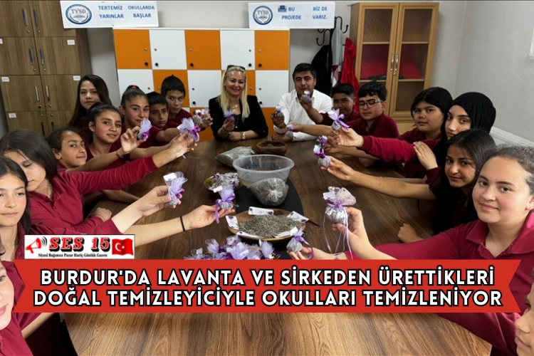 Kentteki Türkiye Yardım Sevenler Derneği İlkokulu ve Ortaokulu öğretmen ile öğrencileri, Milli Eğitim Bakanlığının "Tertemiz Yarınlar Okullardan Başlar" projesi kapsamında, yörede yaygın üretilen lavanta ve elma sirkesinden doğal temizleyici üretti.