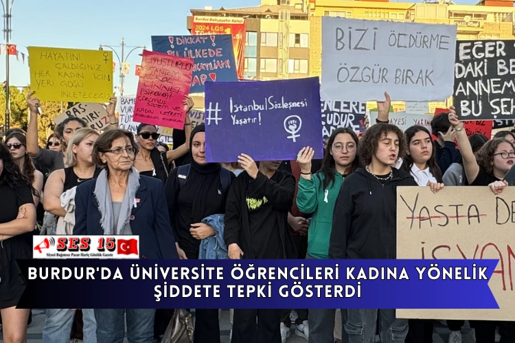 Burdur Mehmet Akif Ersoy Üniversitesi öğrencileri, ellerinde pankartlarla Cumhuriyet Meydanı'nda toplandı.