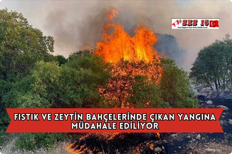 Mera alanlarıyla fıstık ve zeytin bahçelerinin de zarar gördüğü yangının kontrol altına alınması için çalışmalar sürüyor.