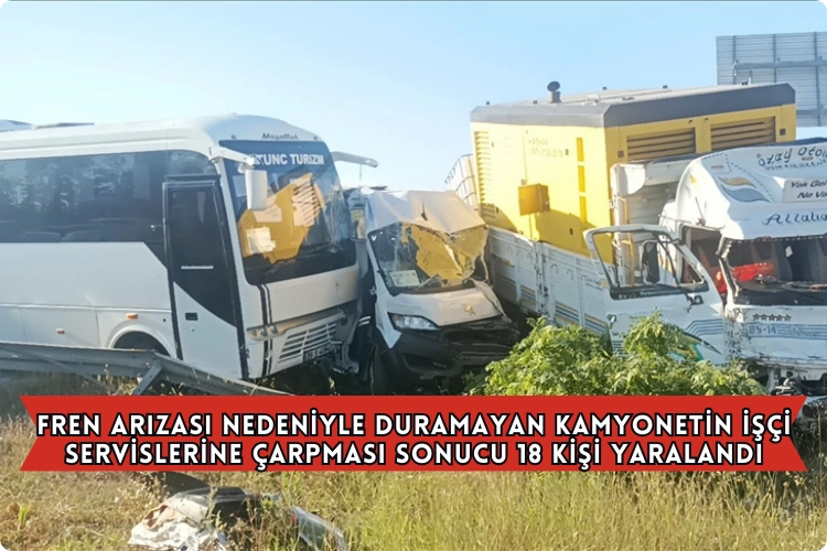 U.K'nın kullandığı 34 GMU 973 plakalı kamyonet, Bağlar Kavşağı'nda önce refüje ardından, kırmızı ışıkta bekleyen N.T. idaresindeki 59 S 4094 işçi taşıyan servise ardından T.G'nin kullandığı 59 J 4015 plakalı diğer işçi servisine çarptı.
