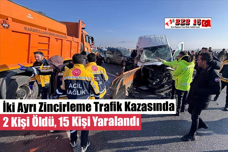 Yaklaşık 30 aracın karıştığı trafik kazalarında ilk belirlemelere göre 2 kişi öldü, 15 kişi yaralandı, yol trafiğe kapatıldı.
