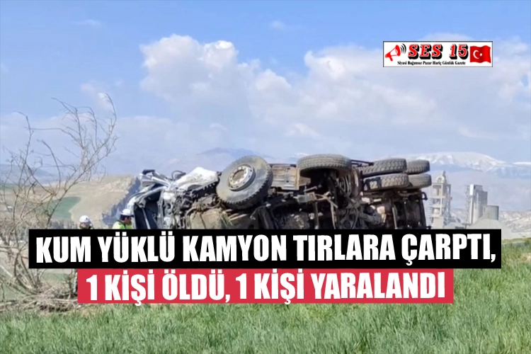 Adıyaman’da kum yüklü kamyonun park halindeki tırlara çarpması sonucu 1 kişi öldü, 1 kişi ağır yaralandı.