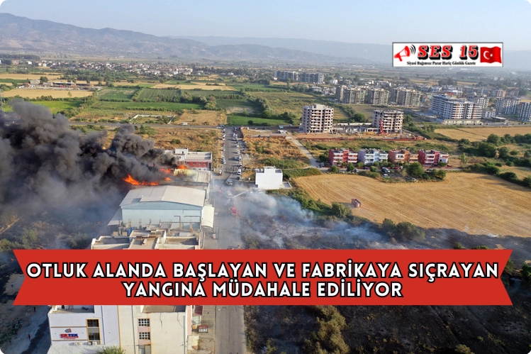 Aydın'ın Efeler ilçesinde otluk alanda çıkan ve organize sanayi bölgesindeki bir fabrikaya sıçrayan yangına müdahale ediliyor.
