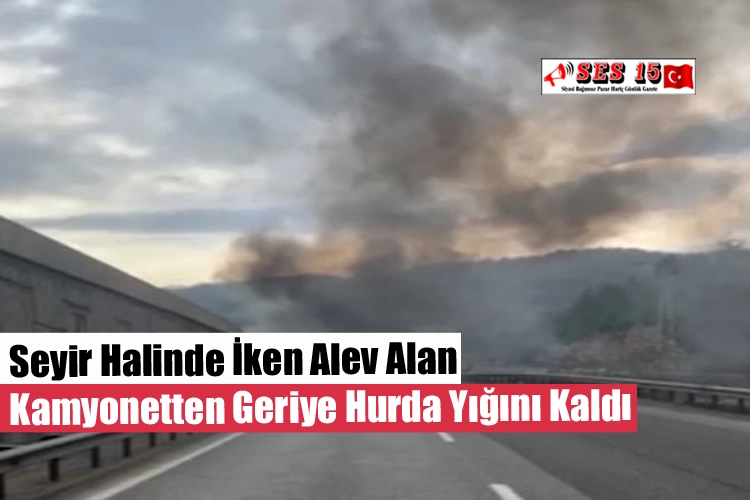 Bilecik'te seyir halindeyken alev alan kamyonet kullanılamaz hale geldi.