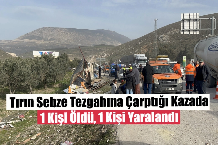 Hatay'ın Kırıkhan ilçesinde, tırın yol kenarındaki sebze tezgahına çarpması sonucu 1 kişi hayatını kaybetti, 1 kişi yaralandı.
