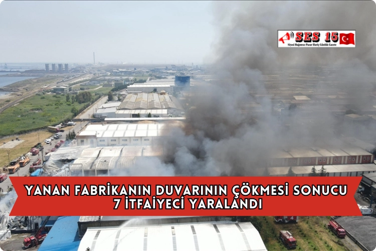 Bu sırada fabrika binasının duvarının çökmesi sonucu 7 itfaiye eri enkaz altına kaldı.