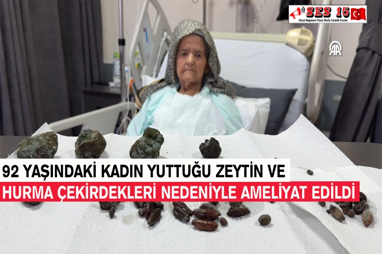 - Zonguldak'ta midesinden ve bağırsağından ameliyatla 28 hurma ve 35 zeytin çekirdeği çıkarılan 92 yaşındaki kadın sağlığına kavuştu.
