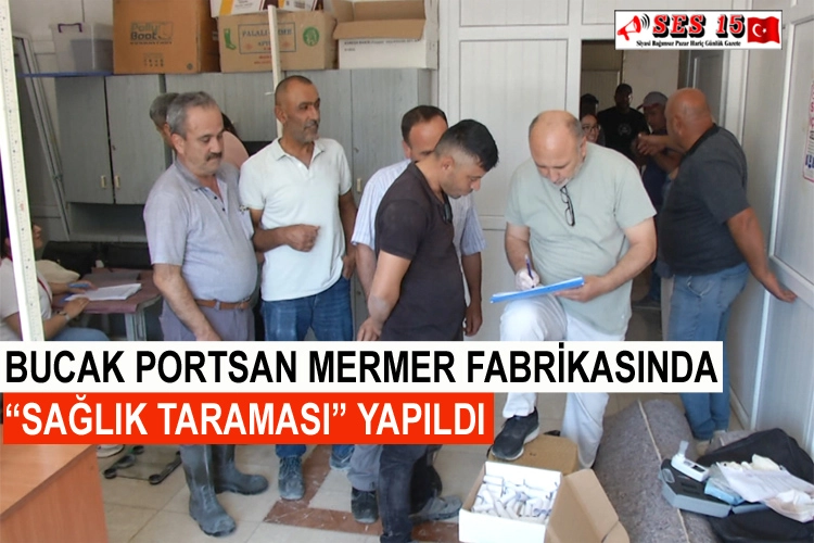 “Sigarayı Bırak Hayatını Değiştir” ve “İdeal Kilonu Öğren Sağlıklı Yaşa” sloganıyla yürütülen proje kapsamında Burdur’un Bucak ilçesinde de sağlık taramaları gerçekleştiriliyor. Bucak İlçe Sağlık Müdürlüğü ile Bucak Mehmet Cadıl Sağlıklı Hayat Merkezi sağlık taramalarına Portsan Mermer Fabrikasında devam etti.