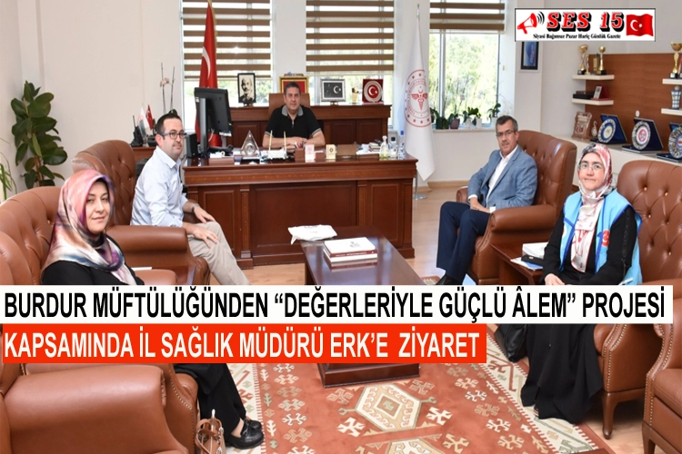 Burdur İl Müftülüğünde görev yapan Şube Müdürü Mehmet Yılmaz, Manevi Danışman Cemil Çiçek, Vaize Ümmü Balaban ve Vaize Nilüfer Ünal, “Değerleriyle Güçlü Âlem” projesi kapsamında Burdur İl Sağlık Müdürü Dr. Murat Erk’i makamında ziyaret etti.