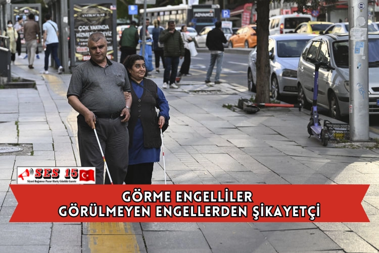 Görme engelli Yılmaz Sezen de kendisi gibi görme engelli eşiyle yürürken, karşılarına çıkan engeller nedeniyle zorluk çektiklerini anlattı.