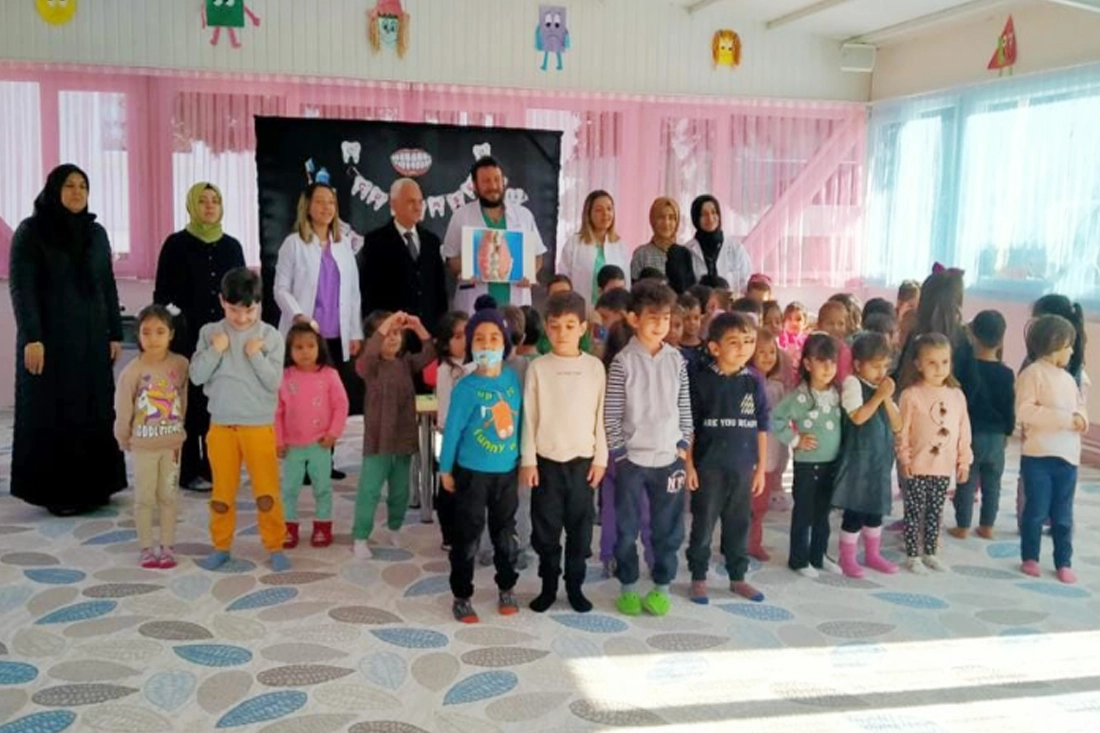 Bucak’ta 4-6 yaş Kur’an Kursu öğrencileri ağız ve diş sağlığı konusunda bilgilendirildi. 20-26 Kasım Toplum Ağız ve Diş Sağlığı haftası nedeniyle Bucak Oğuzhan 4-6 yaş Kuran Kursunda eğitim gören öğrencilere yönelik ağız ve diş sağlığı konularında eğitim verildi. Diş hekimleri Dr. Burak Kaplan, Dr. Zuhal Yıldırım ve Dr. Zeynep Yıldırım tarafından verilen eğitimde diş fırçalama teknikleri, diş fırçalamanın önemi konuları da yer aldı. 4-6 Yaş kurslarında dİnİ eğitimin yanında çocukların sağlıklı gelişimine yönelik etkinlikler de yapılıyor.