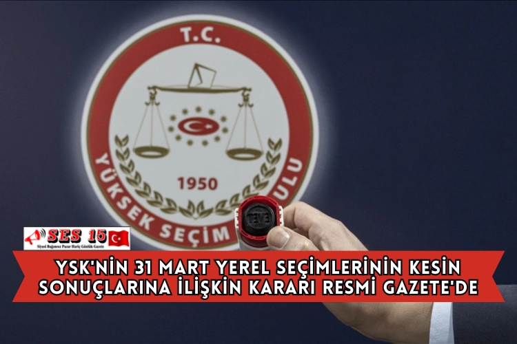YSK'nin 31 Mart yerel seçimlerinin kesin sonuçlarına ilişkin kararı, Resmi Gazete'nin bugünkü sayısında yer aldı.