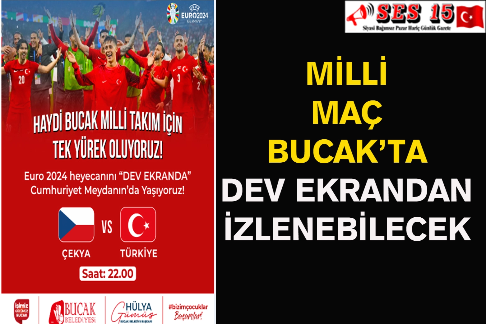 Milli maç Bucak Belediyesi tarafından Cumhuriyet Meydanında kurulan dev ekrandan izlenebilecek. Bucak Belediye Başkanı Hülya Gümüş Bucak halkını milli maçı dev ekrandan izlemeye davet etti.