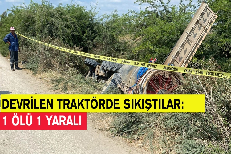Sürücüsünün ismi öğrenilemeyen traktör, Kaldırım Mahallesi'nde yol kenarındaki tarım arazisine devrildi.