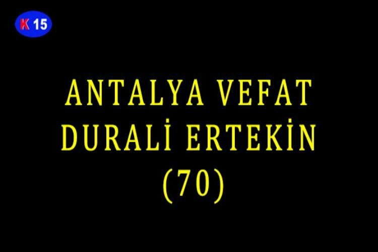 Dutalan köyünden gitme, Antalya'da oturan, Diş Hekimi Durali Ertekin (70) vefat etmiştir. Cenazesi yarın Antalya'da defnedilecektir. Yeğeni Muhammet Özdaş: 0 542 499 8840 NOT: Pandemi sürecinden dolayı Cenazeler sadece birinci derece yakınları tarafından defnedilecektir. Geçmişlerimizin, sevdiklerimizin, geride bir Fatiha okuyacak kimsesi kalmamış Müslüman kardeşlerimizin , Vatanımız ve Dinimiz uğruna şehit olan tüm Şehitlerimizin ruhları için, ALLAH Rızası için, 1 Fatiha 3 ihlas-ı Şerif okuyalım.