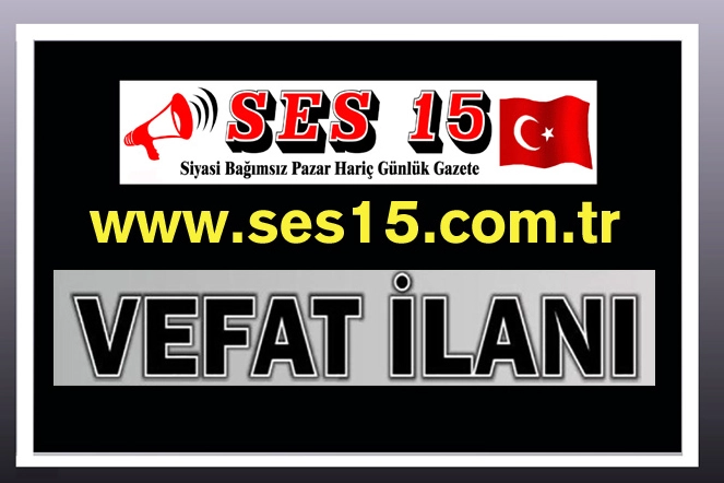 Sanayi mahallesinden, merhum Nasuh Kasap eşi, Nusret, Ali, Ömer, Kemal, Kerim Kasap ve Yadigar Asrav'ın anneleri Hacı Keziban Kasap(90) vefat etmiştir. Cenaze namazı saat 14.00'te Çavuşlar mezarlığı alt kısımda kılınıp defnedilecektir. Taziye evi : Sanayi Mahallesi, Sanayi yolu üzeri, Eski Mezbaha karşısı