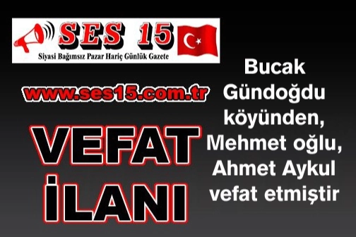 Gündoğdu köyünden, merhum Eğitmen Mehmet oğlu, Ahmet Aykul (Kara Ahmet) (85) vefat etmiştir.