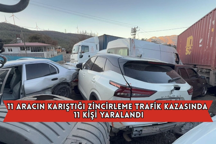 Hatay'ın Belen ilçesinde 11 aracın karıştığı zincirleme trafik kazasında 11 kişi yaralandı.