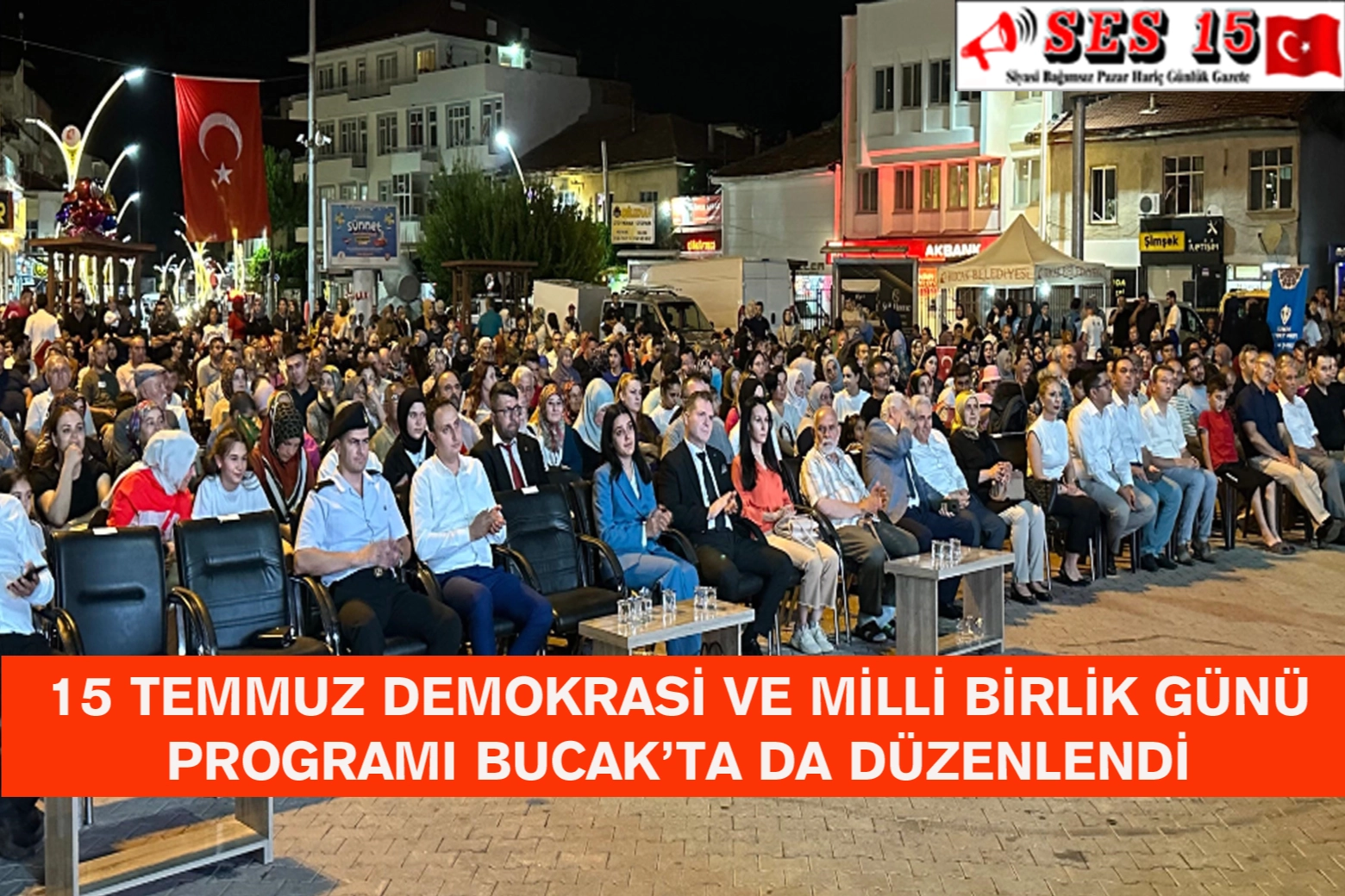 Cumhuriyet Meydanı’nda akşam saat 21.00’de düzenlenen Anma Programına, AK Parti Burdur Milletvekili Mustafa Oğuz, Bucak Kaymakamı Bayram Gale, Belediye Başkanı Hülya Gümüş, Cumhuriyet Başsavcısı Sefa Aygün, İlçe Jandarma Komutanı Teğmen Alperen Çatlı, İlçe Emniyet Müdürü Özkan Büyükyılmaz, kurum müdürleri ve çok sayıda vatandaş katıldı.