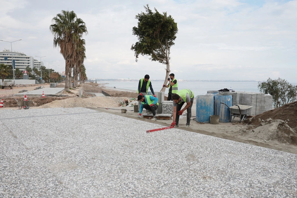 Ekipler, Boğaçayı ve Liman arasındaki sahilde bir yandan altyapı çalışması yaparken, bir yandan da tamamlanan alanlarda kaldırım döşemesi yapıyor.