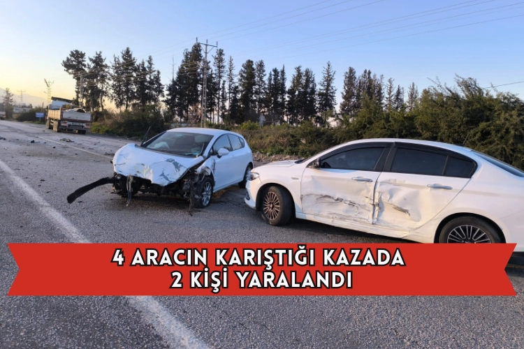 Hatay'ın Dörtyol ilçesinde 4 aracın karıştığı kazada 2 kişi yaralandı.