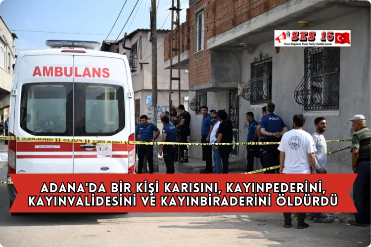 Adana'da bir kişi tartıştığı karısını, kayınpederini, kayınvalidesini ve kayınbiraderini tabancayla vurarak öldürdü.