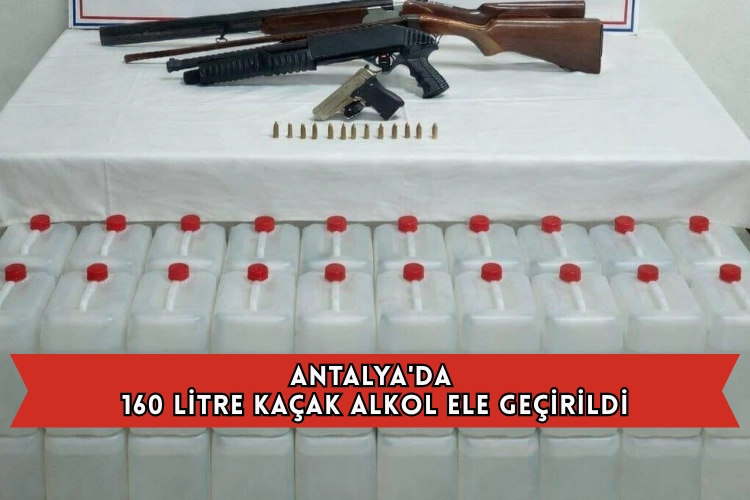 Bu kapsamda şüpheli Ö.C'nin ikametinde ve iş yerinde yapılan aramada, 160 litre etil alkol, bir ruhsatsız tabanca, 2 tabanca şarjörü, 13 fişek, 2 ruhsatsız av tüfeği ve bir pompalı tüfek ele geçirildi.