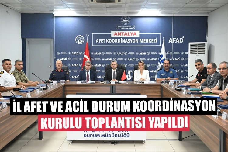 AFAD İl Müdürlüğü Afet Koordinasyon Merkezi'nde düzenlenen toplantıda konuşan Vali Şahin, Antalya ve çevresinin olası afetlere karşı her an hazır olması gerektiğini belirtti.