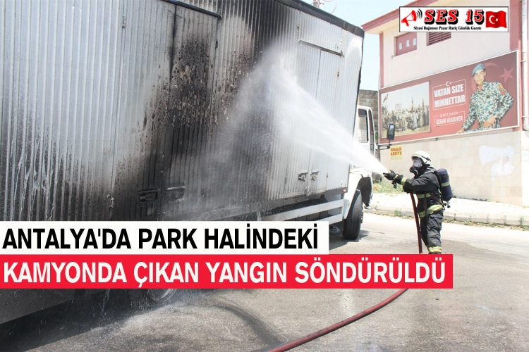 Yangın nedeniyle içerisinde animasyon dekor malzemesi bulunduğu belirlenen kamyonun kasa bölümü tamamen yandı.