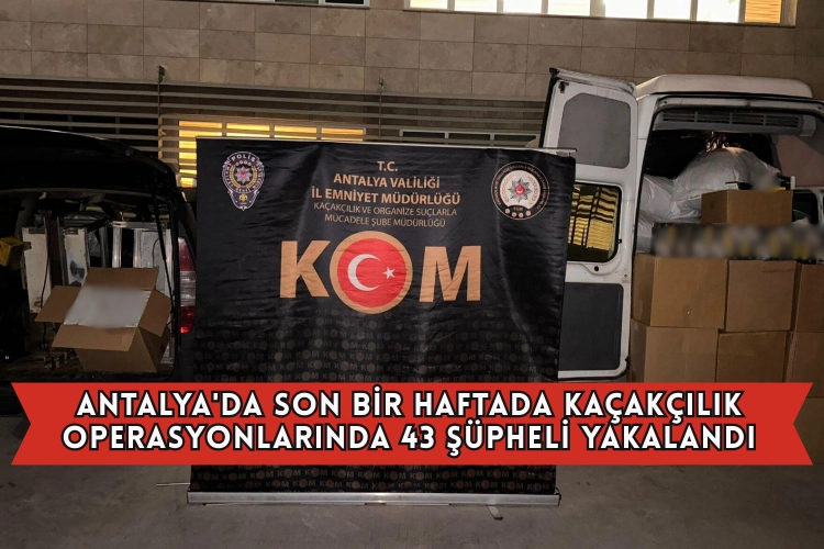 Valilikten yapılan açıklamaya göre, İl Emniyet Müdürlüğü Kaçakçılık ve Organize Suçlarla Mücadele Şubesi ekipleri, kent genelinde kaçakçılık faaliyetlerinin önlenmesine yönelik çalışmalarını sürdürüyor. Bu kapsamda, son bir haftada gerçekleştirilen operasyonlarda 43 şüpheli gözaltına alındı.