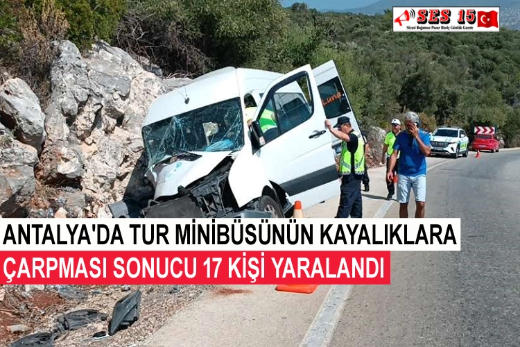 Özgür Taştekin idaresindeki 07 BMZ 721 plakalı tur minibüsü, Finike-Demre kara yolunda sürücüsünün direksiyon hakimiyetini kaybetmesi sonucu yoldan çıkarak kayalıklara çarptı.