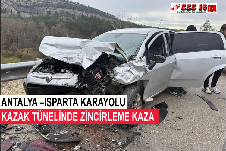 Kazada 5 kişi yaralı olarak hastaneye sevk edildi. Edinilen bilgilere göre bugün saat 11.00 sularında Antalya-Isparta Karayolu Kazak Tüneli çıkışında 3 aracın çarpışması sonucu trafik kazası meydana geldi.
