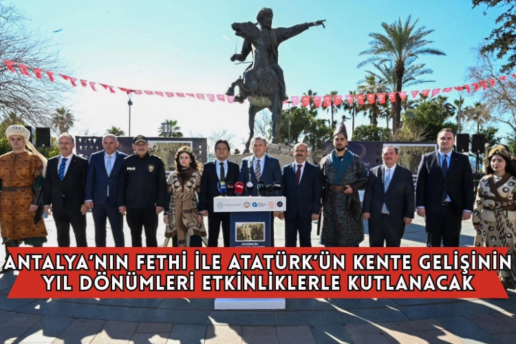 Valilik, Büyükşehir Belediyesi, Akdeniz Üniversitesi ve paydaşlarla birlikte 5 Mart’ta Antalya’nın fethinin 819., 6 Mart’ta ise Atatürk’ün kente gelişinin 96. yıl dönümünü kutlayacaklarını belirten Şahin, kutlamaların Milli Savunma Bakanlığı Mehteran Birlik Komutanlığı konseriyle başlayacağını vurguladı.