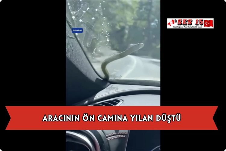 Yaşadığı olayı cep telefonu kamerasıyla kaydeden sürücünün, "Arabamın camına yılan düştü. Şu an kafayı yiyeceğim. Yemin ediyorum bağıracağım, imdat" dediği anlar görüntülerde yer aldı.
