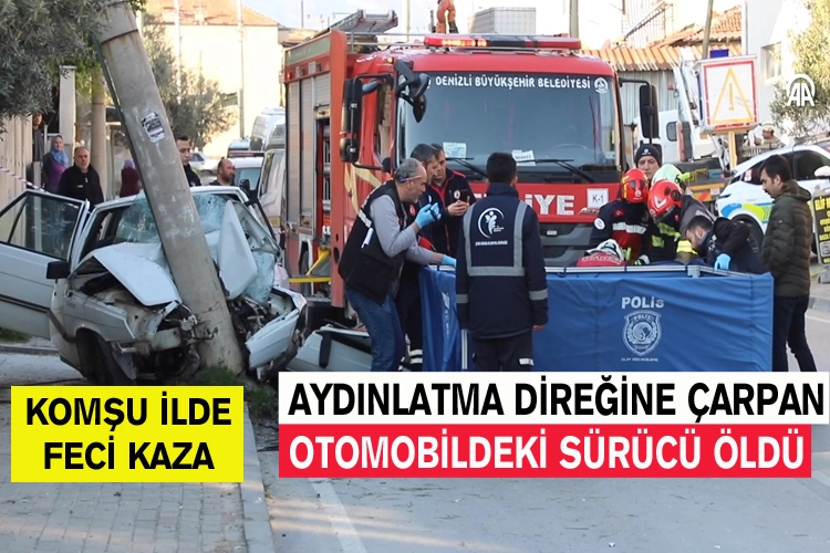 Denizli'nin Merkezefendi ilçesinde yol kenarındaki aydınlatma direğine çarpan otomobildeki sürücü hayatını kaybetti.
