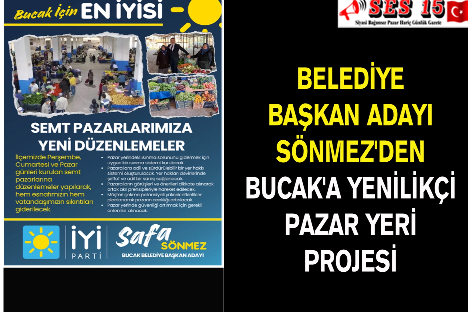 Bucak ilçesinin kalkınması ve sosyal yaşam kalitesinin artırılması adına önemli bir adım atan İYİ Parti Belediye Başkan Adayı Safa Sönmez, semt pazarlarına yönelik kapsamlı bir düzenleme projesini hayata geçirmeyi hedefliyor.
