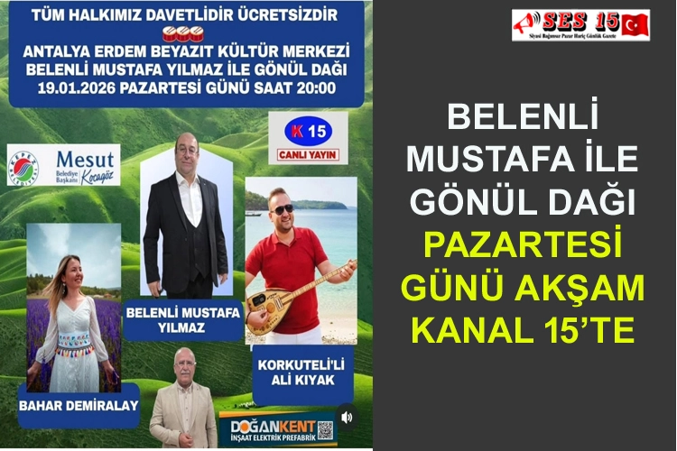 Kanal 15 ekranlarında yayınlanan “Belenli Mustafa ile Gönül Dağı” programı, Pazartesi günü akşam canlı yayınla sizlerle olacak.