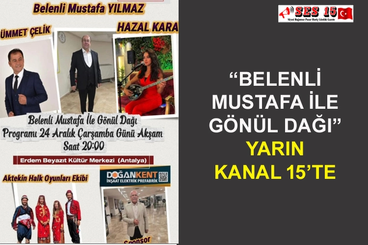 Kanal 15 ekranlarında yayınlanan “Belenli Mustafa ile Gönül Dağı” programı, yarın akşam canlı yayınla sizlerle olacak.