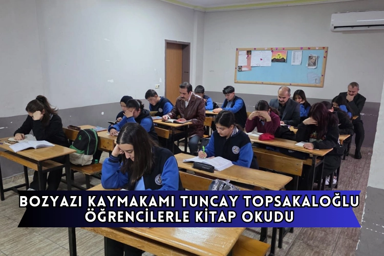 İlçe Milli Eğitim Müdür Vekili Adem Limon'un eşlik ettiği Topsakaloğlu, öğrencilerle kitap okudu.