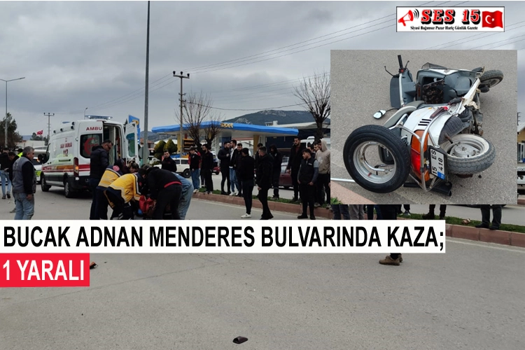 Edinilen bilgilere göre bugün saat 13.40 sularında Bucak Adnan Menderes Bulvarı 2508 Sokağın kesiştiği kavşakta 15 ES 418 plakalı motosiklet ile 15 ABC 786 plakalı ticari aracın çarpışması sonucu trafik kazası meydana geldi.