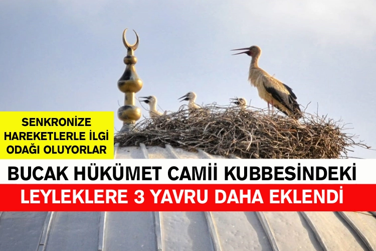 Bucak Konak Mahallesi’nde bulunan Hükümet Camiinin kubbesi üzerinde yuva oluşturan leylekler 15 yıldır mahalle halkının ve çevrede bulunanların ilgi odağı oluyor. Hükümet Cami çatısına yuva yapan leylekler, bu yılda yuvalarına geri dönerek 3 yavru çıkardı. Leylekler her geçen gün büyüyerek uçma seviyesine geliyor.