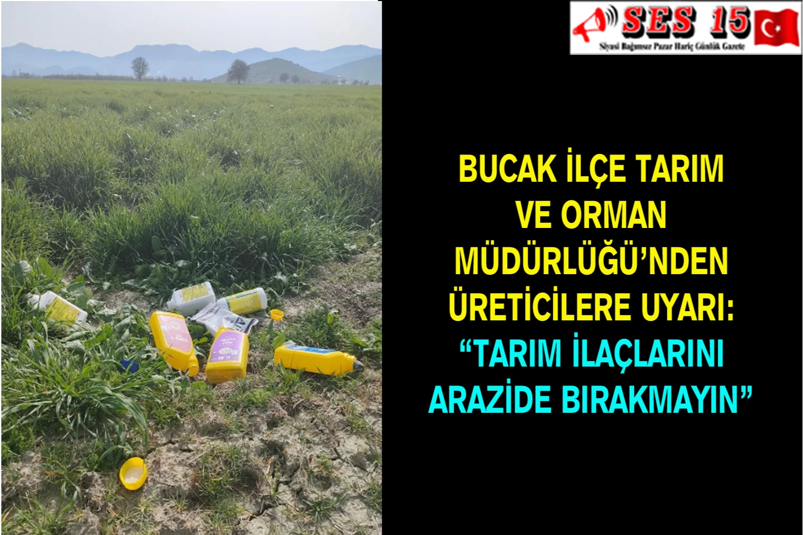 Tarım arazilerinde yabani ot, fare ile mücadele gibi ilaçlama dönemi olması dolayısıyla üreticiler ekili arazilerde gerekli ilaçlamayı gerçekleştiriyor. Ancak zaman zaman ilaç kutuları ve ilaçlar arazide bırakılabiliyor. Bu da insan sağlığı, yaban hayatı ve çevreye zarar oluşturabiliyor.