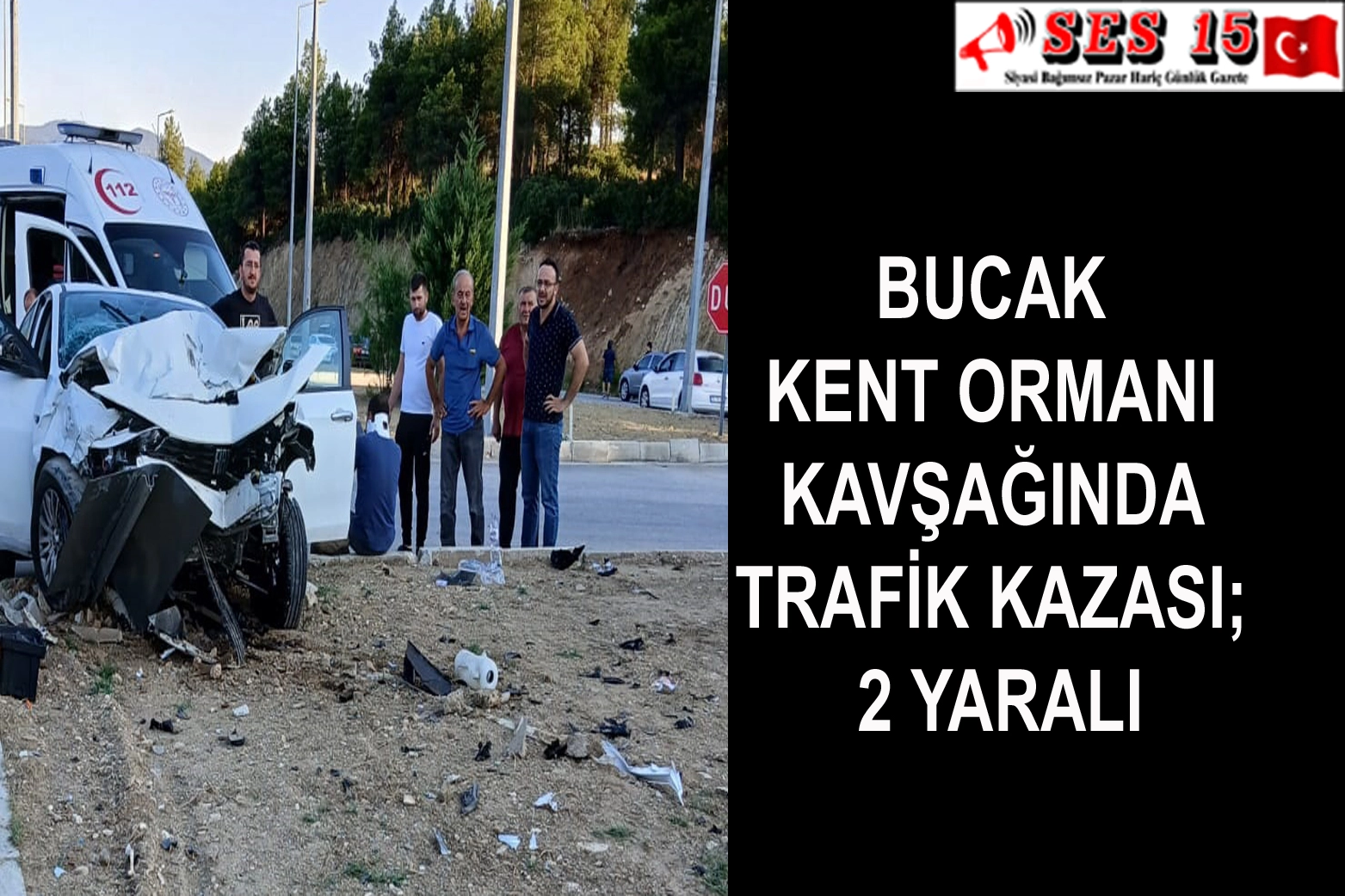 Kazada 2 kişi yaralandı. Edinilen bilgilere göre bugün saat 19.00 sularında Antalya Burdur Karayolu Bucak Kent Ormanı girişi kavşağında 15 PH 550 plakalı araç ile 34 KMH 540 plakalı aracın çarpışması sonucu trafik kazası meydana geldi.