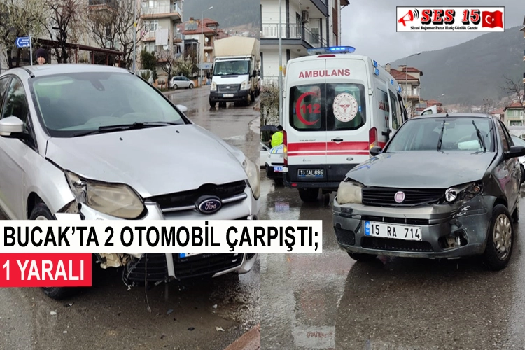 Edinilen bilgilere göre bugün saat 14.30 sularında Bucak Konak Mahallesi Genç Osman Caddesi Bucak Halk Kütüphanesi yanında 15 PG 360 plakalı otomobil ile 15 RA 714 plakalı otomobilin çarpışması sonucu trafik kazası meydana geldi. Kazada 15 RA 714 plakalı otomobilde bulunan yolcu yaralandı.