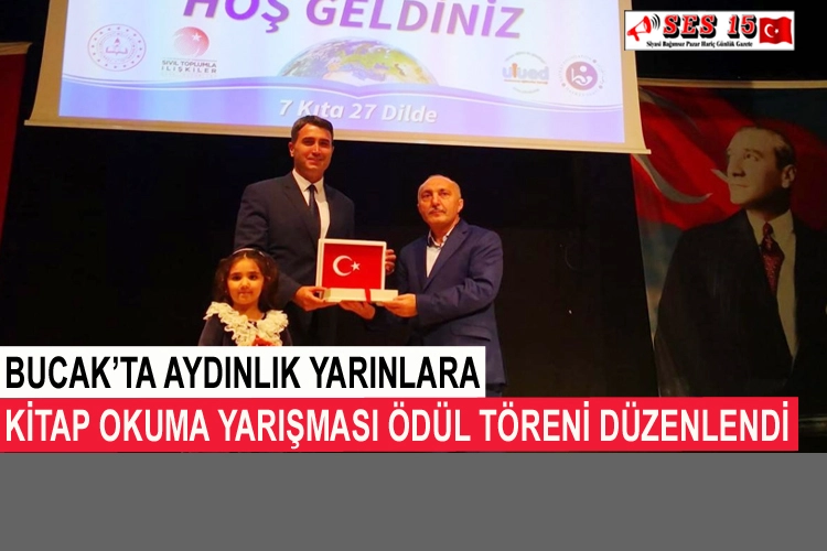 Milli Eğitim Bakanlığı öncülüğünde, Uluslararası Eğitimciler Derneği ve Hayrat Vakfı işbirliğinde düzenlenen “Aydınlık Yarınlara Kitap Okuma Yarışması’nda” dereceye giren öğrencilere ödülleri verildi. Bucak Kültür Merkezi’nde düzenlenen törende konuşan Hayrat Vakfı Bucak İlçe Temsilcisi Hasan Kayacan, “Aydınlık Yarınlara Kitap Okuma Yarışmamızın” 4.’sünü gerçekleştirmiş bulunuyoruz. Bugün burada dereceye giren 46 öğrencimize ödüllerini takdim edeceğiz” dedi.